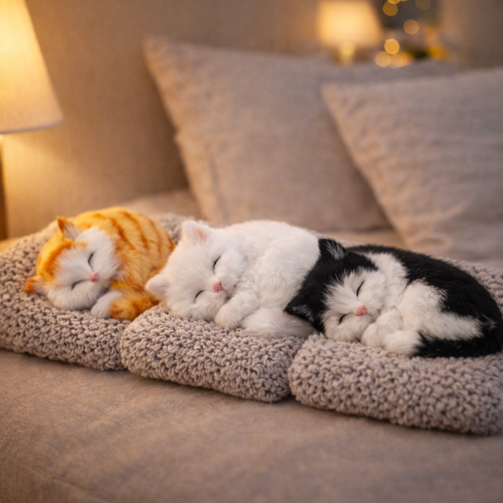 The Sleeping Cat Plush Toy is designed to look like a peacefully curled-up kitten resting on a soft cushion. With its realistic fur texture, gentle sleeping expression, and cozy design, it brings warmth, comfort, and charm to any space.